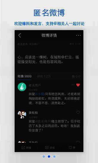 2、匿名微博让用户能尽情表达想法;