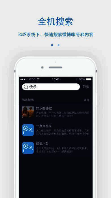 用户可在此发布任何动态信息,所有关注自己的朋友都能第一时间看到,分享好玩信息无需再发短信打电话,发微博十分便捷。