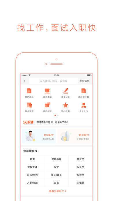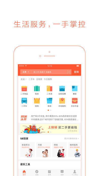 《58同城》为广大用户提供涵盖房屋租售、二手买卖、招聘求职、汽车租售、宠物票务、餐饮娱乐等海量生活信息,其服务覆盖全国所有大中城市,汇聚了大量个人和商家信息,旨在让生活更加舒适便捷。