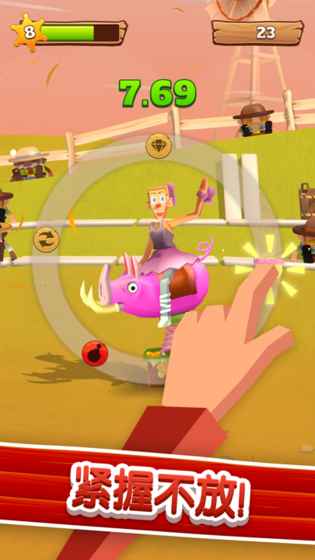 游戏玩法创意满满,玩家成为驯牛骑士,骑在疯狂公牛上,公牛不断撞击栏杆,你能承受住强大冲击力吗?快来挑战吧!