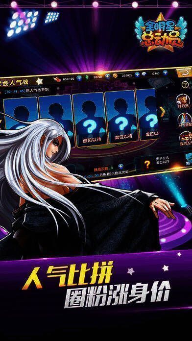 《全明星总动员》是一款极具趣味性的明星模拟养成手游。游戏中有Q萌可爱的超级巨星等待玩家培养,其战斗场景华丽酷炫,能让玩家沉浸其中。它拥有丰富的玩法系统,玩家登录即可领取海量福利,每天还有钻石相送。玩家能在游戏里体验成名养成新玩法,感受超爽人气之战与别样合击趣味,赶紧下载开启称霸娱乐圈之旅!
