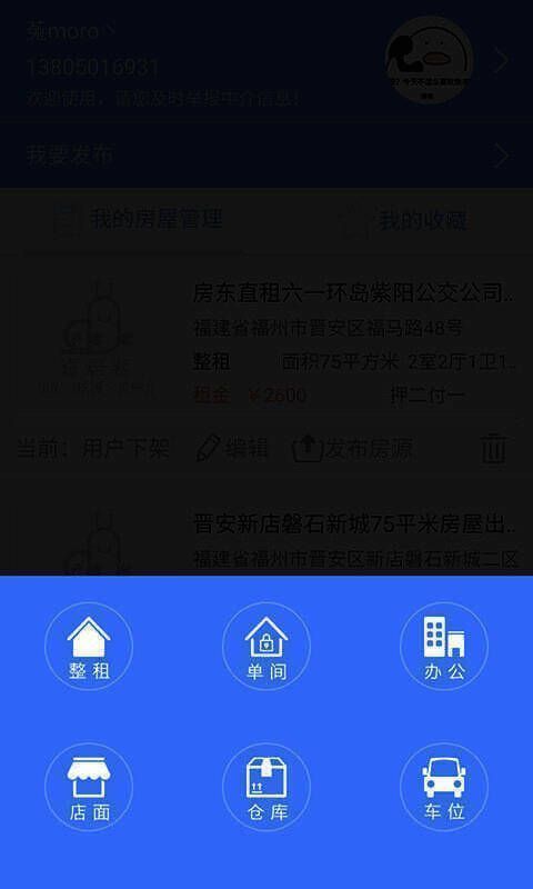 2、新增日租、二手房、写字楼、商铺、车位、厂房、仓库、土地类别发布;