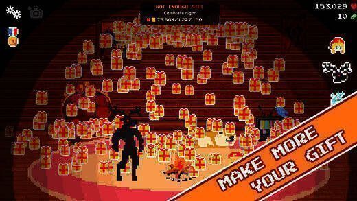 《暗黑驯鹿》是一款极具趣味性的暗黑风格像素冒险手游。玩家在游戏里能化身圣诞老人派送礼物,享受独特快感,还会遭遇各类奇妙冒险。这是由Pixel CAT studio出品的益智休闲游戏,玩法简单,点击抛下礼物收集爱心,再点击制作礼物,能体验节日乐趣与制作神秘物品的快乐。