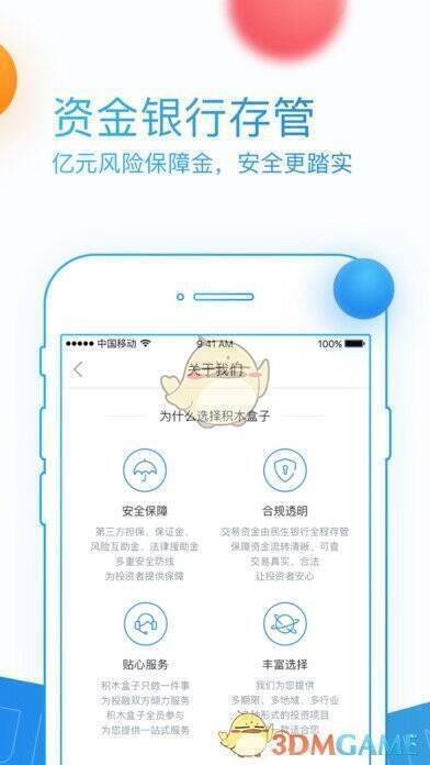 积木盒子是一款真诚透明、安全可靠的互联网金融理财产品,致力于为投资者提供新型、快捷、可信赖的互联网理财服务。截至目前,平台累计投资金额超50亿元,为投资人获利超15亿元,运行至今600多天无坏账。