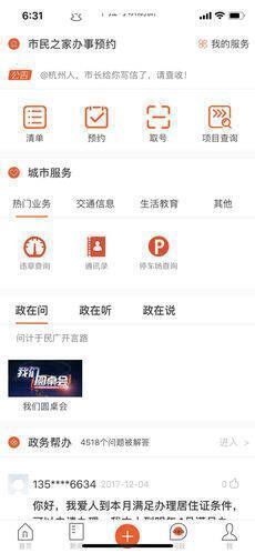 4、全新杭州之家呈现独有的三个加号:“新闻 + 服务、视频 + 直播、问政 + 便民”,带来新潮玩法,离新闻更近,与用户更亲。