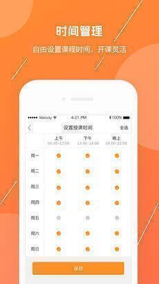 - 【课程管理】可自主安排上课时间、课酬,自由上架下架课程。