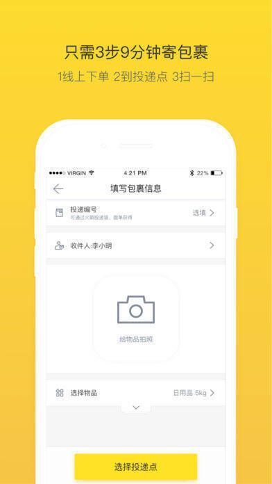 不用叫快递员,9分钟就能寄出包裹。火箭投递袋一口价寄全国,京城有3000+个投递点,可自由决定寄件时间。下单生成火箭令牌,核心信息清晰,方便完成投递。拍照寄件,适应物联网时代。