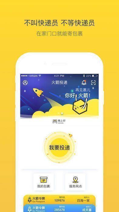 不用叫快递员、不用等快递员、不用手填纸面单、不用称重计价,只需把物品放进火箭投递袋,投入投递点即可。随时随地体验省时省心省钱的投递服务。目前已开通全国多个城市,其他城市正在陆续开通,暂不支持寄往新疆、西藏、青海、海南。