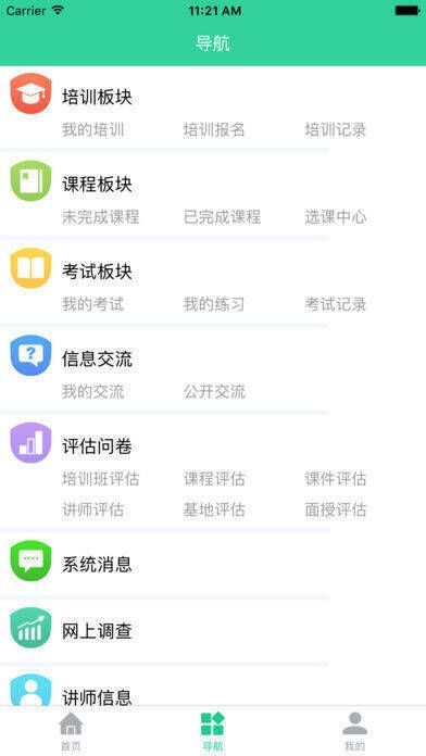 培训:能查看所选培训课程。课程:有丰富课程供你挑选。考试:可通过考试评测学习情况。交流:能进行简单交流互动。