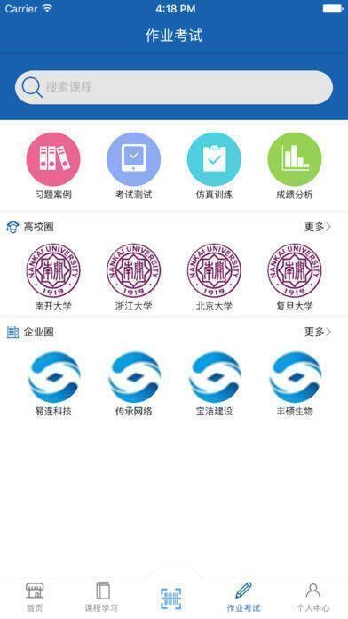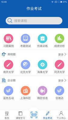 - **作业考试功能**:作业考试板块包含习题案例库、考试测验和成绩分析。用户可通过习题、案例练习或考试测验巩固所学知识,借助答案解析加深理解记忆。可通过二维码扫码获取作业,也可由教师推送作业至App移动端,完成作业更轻松。