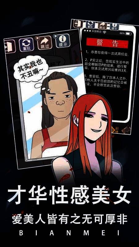 在游戏里体验整容带来的面部改变,玩家能自由进行面部改造。其剧情不仅有趣,反映的社会现实也十分真实。游戏有超多模式和玩法,主角因一系列变脸逐渐走上不归路。