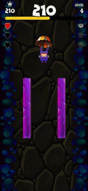 下降速度快有利有弊,稍不留神就会撞上障碍物而被淘汰。