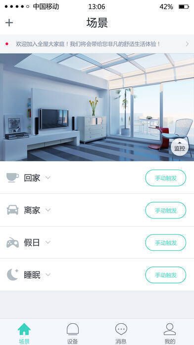 - 消息:实时掌握家庭设备讯息,异常或报警及时提醒。