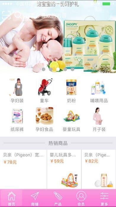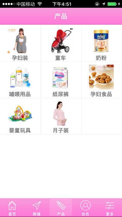 【分类清晰】产品分为孕妇装、童车、奶粉、哺喂用品、纸尿裤、孕妇食品、婴童玩具、月子装等。