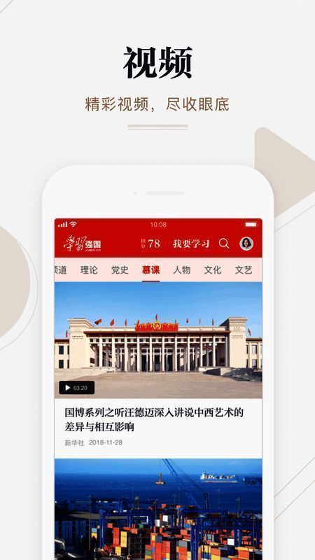 3、视频学习:让您在视听盛宴中收获鲜活学习体验。第一频道、短视频、慕课、影视剧、纪录片等海量音视频源源不断。