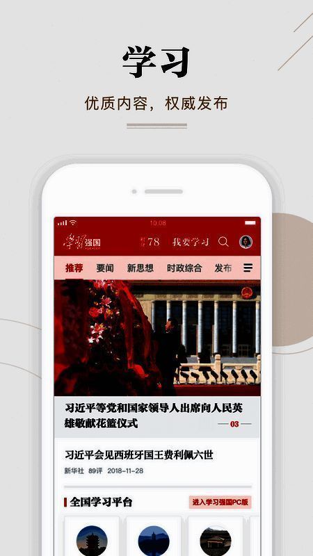 - 一个号召全党全民学习的App!只有学习,才能强国!内容集大成,极为丰富。