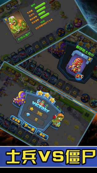 游戏有着激情的塔防对战模式,僵尸的袭击十分震撼,人类最后的希望就掌握在玩家手中。防守与僵尸对战乐趣十足,玩家要带领队伍赢得生存之战。士兵们无畏生死守护家园,游戏还有不同竞技挑战与闯关,玩家需研究新策略应对各类僵尸,完成守护任务!