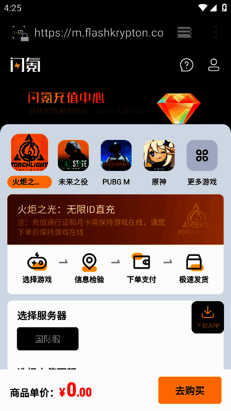 闪氪苹果官网版目前暂无app上架苹果应用商店,大家可前往官网进行充值,还能把网页书签保存到本地桌面,随时打开使用,十分便捷。闪氪app能为用户提供优质充值服务,支持大家自由为国际服游戏账号充值,采用ID直充,无需密码上号,安全又方便。
