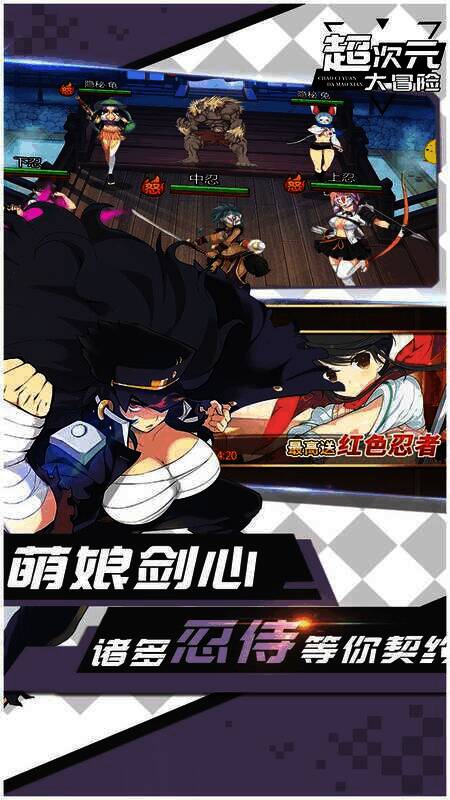 《超次元大冒险》是以忍者漫画《闪乱神乐》为题材的2D卡牌手机游戏。它高度还原漫画剧情,玩家能亲身感受热血少女们在神乐之道上的拼搏。玩家可绑定心仪的少女组合,组建完美的羁绊战队,带领不同类型的少女,成为她们的高贵之主。