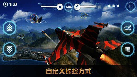 【竞技模拟,真3D指尖感官操控】操作上,玩家可自由选重力感应或虚拟摇杆。重力感应下倾斜设备控制战机360度飞行,虚拟摇杆则用大拇指滑动屏幕操控。手指划动可控制特技飞行动作,结合3D全景视角,带来真实空战乐趣。