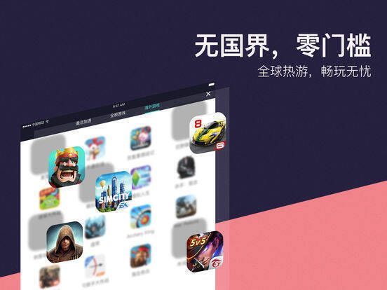- 支持机型:支持并适配iPhone及iPad所有机型,让您在大屏设备上也能体验加速后的畅快游戏感受。