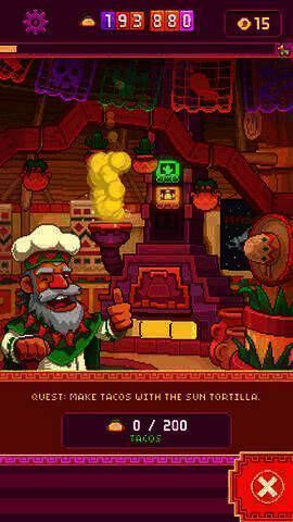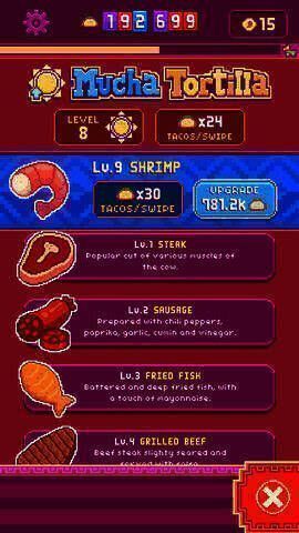 1、借助放置和点击玩法,玩家能无限生产美味墨西哥卷,从白手起家开始慢慢赚钱、开设分店,最终与劲敌Taco Bell比肩甚至超越它。