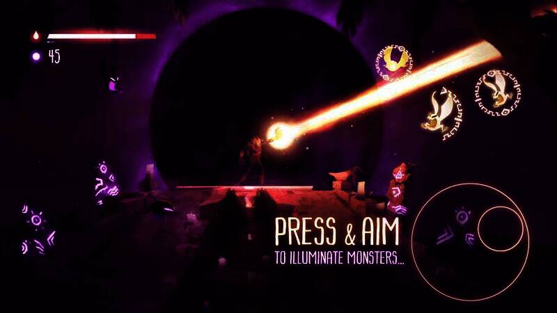 游戏将手机屏幕一分为二,左侧是献祭键,右侧是主要攻击按键。按住攻击键,角色会持续发射能量光束,在圆盘式虚拟按键上滑动可控制攻击方向,操作简单易上手。