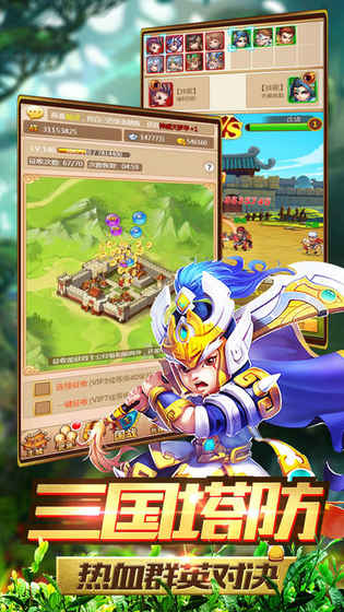 《塔防赵云无双》是一款以三国为背景的Q版策略塔防手游。它场景画面清新可爱,玩法创新,将传统塔防里静止的防御塔变为动态的三国名将,增添了游戏的策略性与趣味性。