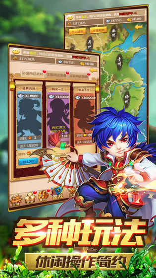 这是一款三国背景的休闲塔防+策略+RPG游戏。游戏胜负靠手中的蛮族兵、弩兵、符咒师等15种兵牌发动奇袭,这些兵牌既能单独当奇袭卡,也能和英雄搭配使用。