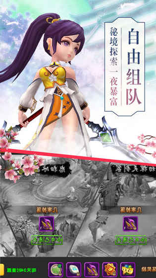 游戏里的二段轻功搭配技能瞬发,在帮派大战、跨服PK中,玩家能用指尖操作畅快战斗!法宝和呆萌宠物还可提升战斗力。