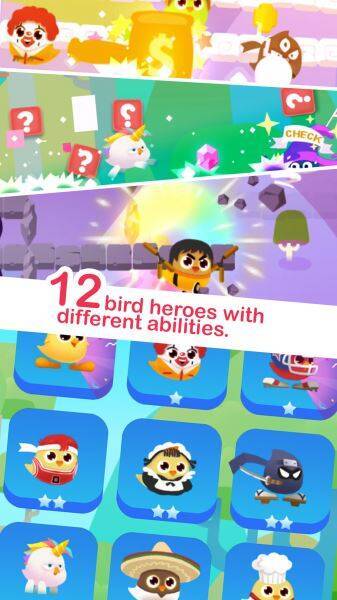 一款极具小清新风格的平台跳跃游戏《小黄鸡跳一跳》等你来体验!在游戏里,你将化身为超级小黄鸡,一路冲向天际,开启拯救女神鸡的冒险之旅。这里有12种可爱的角色供你选择,6个强大的BOSS等你挑战,上百个关卡充满了未知与惊喜,保证让你玩多久都不会感到厌烦,快来试试吧!