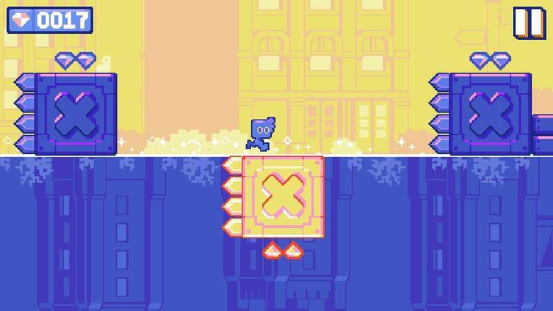 《翻转跃进》是趣味性十足的休闲游戏,画面简约,采用简单像素风格,玩法轻松诙谐,老少皆宜。游戏最大特色是“交换”,关卡为正反两面世界,主角能进入正反世界。遇到阻碍时,让角色站在世界界线,上下划动即可切换世界拓展道路。游戏流程无限制,途中设有存档点,花费少量路上可得的钻石就能存档。