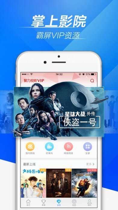 8. VIP尊享页面,第一时间提供会员独享的院线同步大片。