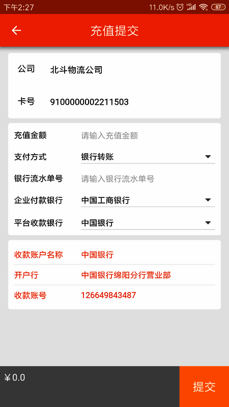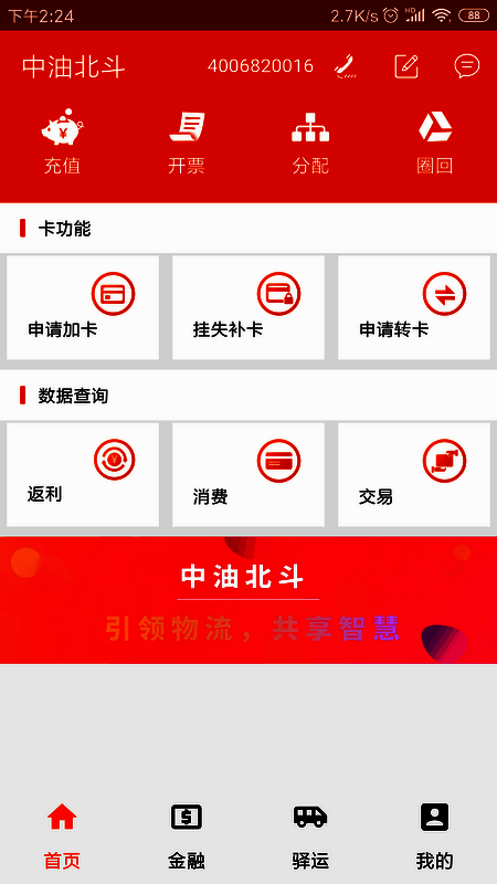中油北斗APP专为物流企业客户打造的办公商务软件,可助力客户完成加油卡线上充值、电子发票开票等业务。安卓版是智能物流管理平台,能解决物流管理、车货配对等一系列问题。系统实现免费运输管理,帮助客户实现线上线下闭环管理,提升效率、降低成本,充值界面还新增多家可绑定银行。