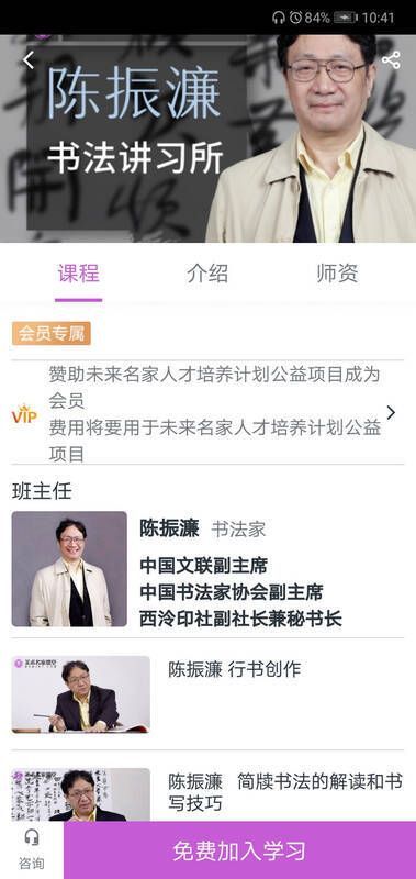 《美术名家课堂》分为名家课堂、艺术公开课、美术热点、名家约课、名家直播五大板块。自上线后,吸纳了吴山明、何水法等几十位国内知名美术教育家、艺术家,保障了授课质量。线上课程覆盖小学硬笔、毛笔书法,以及各类美术专业基础临摹、写生、创作课程等。