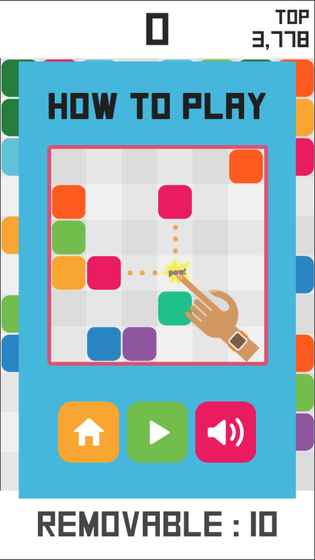 方块碰撞是玩法新颖的消除游戏,两个相同方块在同一行或列且中间无其他方块相隔就能消除。不过每隔一两秒会新增方块,方块填满屏幕游戏结束。