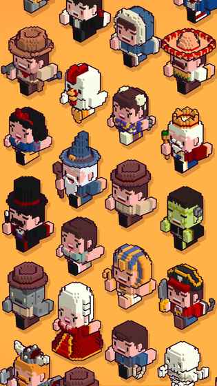 6. 可收集超40个像素角色,像忍者、魔法师、骷髅、鸡、冒险袭击者、古墓探险家等。