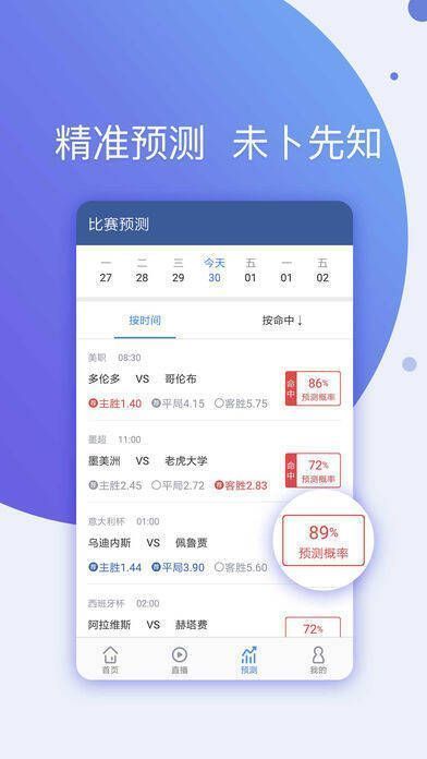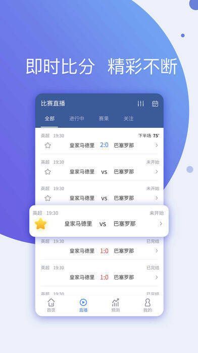 1. 可随时随地掌握比赛动态,提供快速精准的即时比分直播服务。