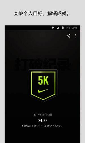 当你打破最快 5 公里或最长跑步距离等个人记录时,就能赢取里程碑徽章和奖杯。