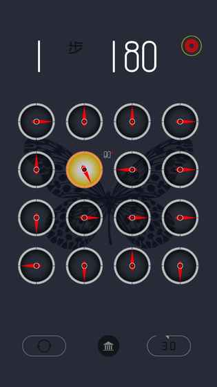 游戏玩法十分简单,仅需点击指针表使其转动。不过依据蝴蝶效应,每当指针指向某个指针表时,该指针表也会随之偏转,进而获得一定积分。触发次数越多,积分增长越快。一般玩家较难掌握,说不定婴儿玩得都比你出色。