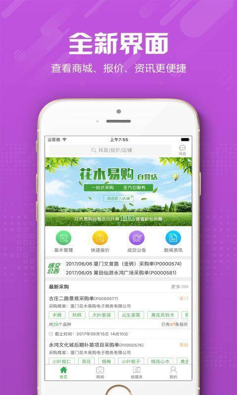 “花木易购”作为苗木垂直电商交易平台,整合了苗木的需求和供应资源,致力于打造苗木流通领域的垂直电商B2B平台。它汇集了苗木供需信息,同时提供验苗、调度、供应链金融、物流配送等专业服务,为客户提供苗木“互联网 +”一站式解决方案。
