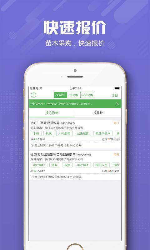 1. 用苗单位可在平台发布苗木采购信息,苗农进行报价,用苗单位从众多报价中挑选最优进行购买。