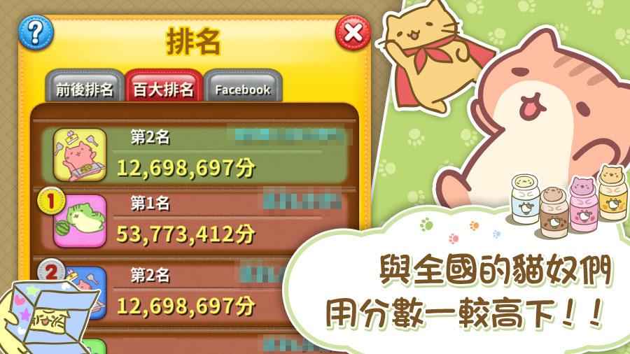 7、与Facebook连动后,能查看其他猫奴好友的分数。