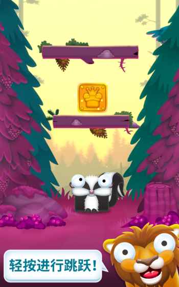 《蓬蓬跳》玩法简单,玩家只需找准时机轻按屏幕,操控可爱的狮子“利奥”们在长短不一的平台上跳跃,逐步向上攀登。不过要注意不能踏空,否则会掉入蓬蓬深渊,游戏失败。