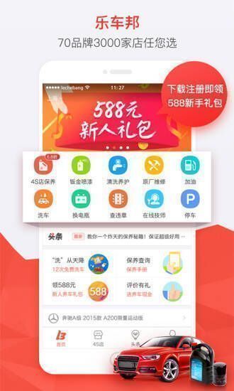 新用户下载注册即送价值588元红包,在加油、洗车、保养、钣喷、清洗养护、维修等方面都能享受优惠。
