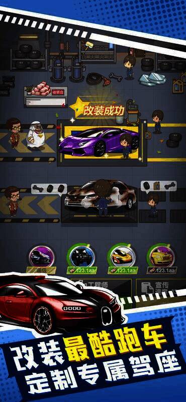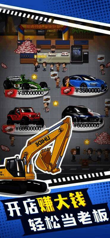 这是一款融合了汽车销售经营与模特收集的经营类游戏。玩家要通过解锁升级汽车、销售员和工程师,做好宣传等操作吸引更多顾客,不断扩充分店、扩大规模,最终成为全球汽车业霸主,玩法休闲又有趣。