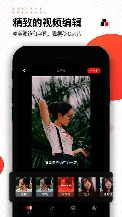 1、「滤镜」:快影提供30多款电影胶片级精美滤镜,提升视频画质。