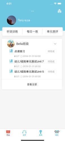 2、进入APP首页,完成老师布置的作业并提交给老师批改。