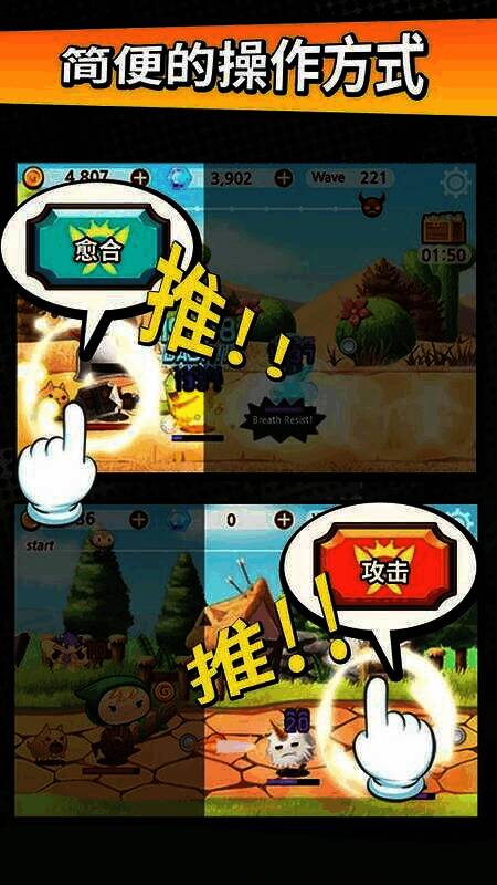 这是一款手指点击类动作游戏,玩家轻触手机就能成为最强勇士。游戏采用漫画形式呈现,能带来前所未有的快感,让你体验惊险刺激的战斗与畅快淋漓的快乐。