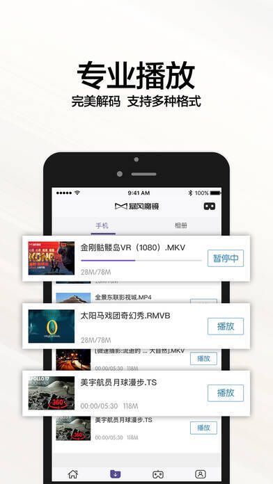 《暴风魔镜》是一款高清VR内容播放器,它拥有海量的VR电影、全景视频以及3D游戏资源。能为用户带来超越IMAX的大屏体验,让大家在游戏中仿若置身其中,感受最真实的游戏乐趣。赶紧下载体验吧!